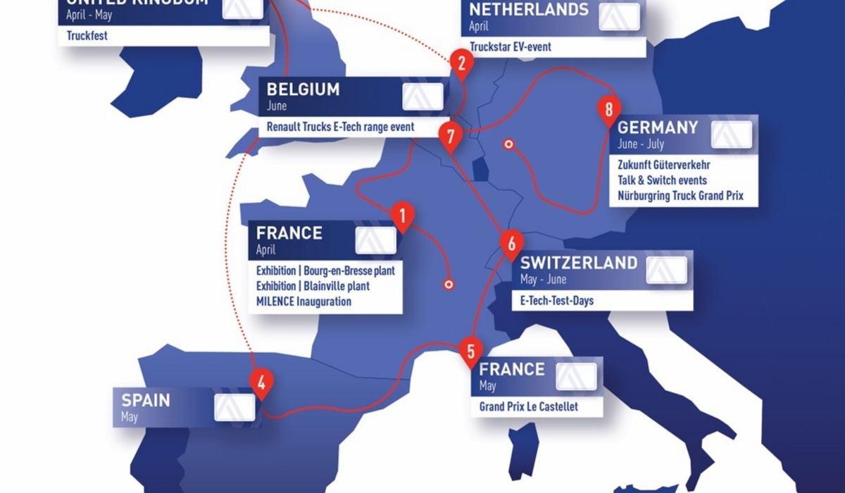 Renault Trucks geht mit einem leuchtenden, vollelektrischen Lkw auf Europa-Tour. Der E-Tech T mit dem Namen 'Diamond Echo' wird mit seinem Elektrolumineszenz-Design mehr als 10.000 Kilometer in sieben Ländern zurück- und dabei mehr als 60 Stopps einlegen.