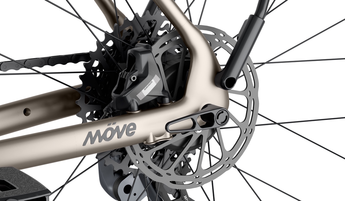 Mittig im Hinterrad stecken mit Scheibenbremse, E-Motor und Zwölfgang-Kassette einige wichtige Komponenten Foto: Möve Mobility