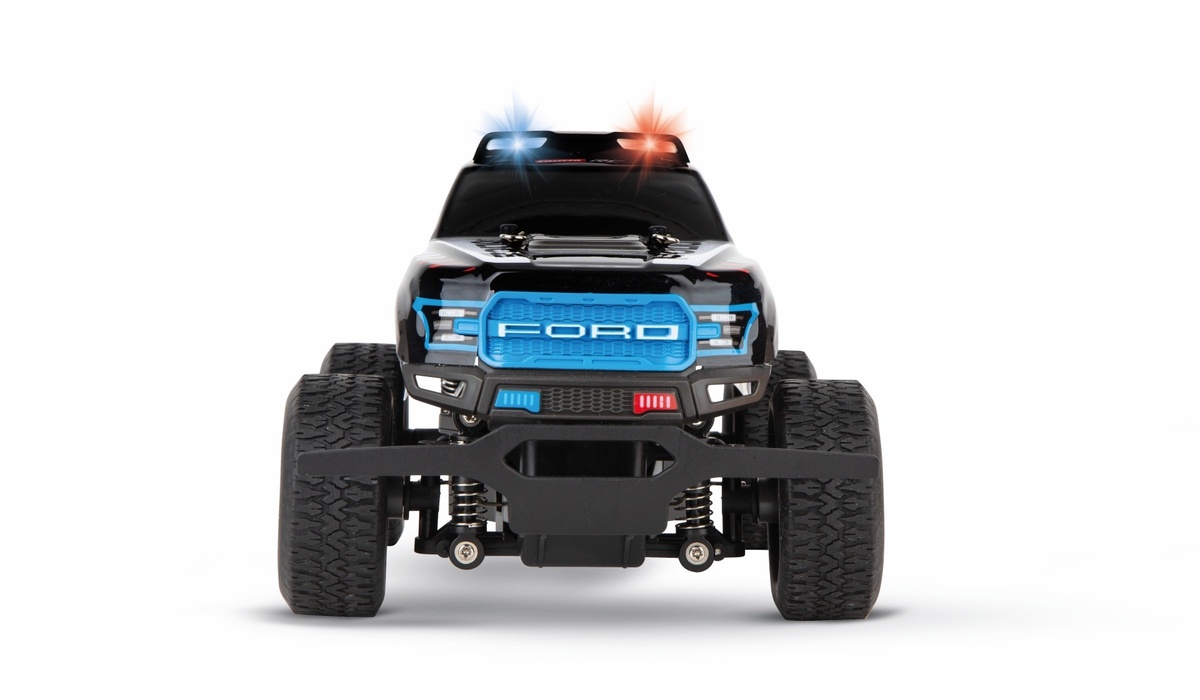 Fans des US-Kult Wagens Ford F-150 Raptor kommen bei dem Spielwarenhersteller Carrera RC jetzt voll auf ihre Kosten. Der Kraftprotz im Kleinformat startet als ferngesteuertes Fahrzeug mit verschiedenen Lackierungen durch - nun auch im Polizei-Design mit Blaulicht.
