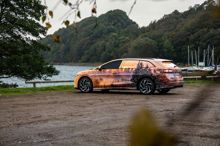 mid Groß-Gerau - Passend zur Jahreszeit ist die Tarnung des ID.7 Tourer im Indian-Summer-Look gehalten. VW