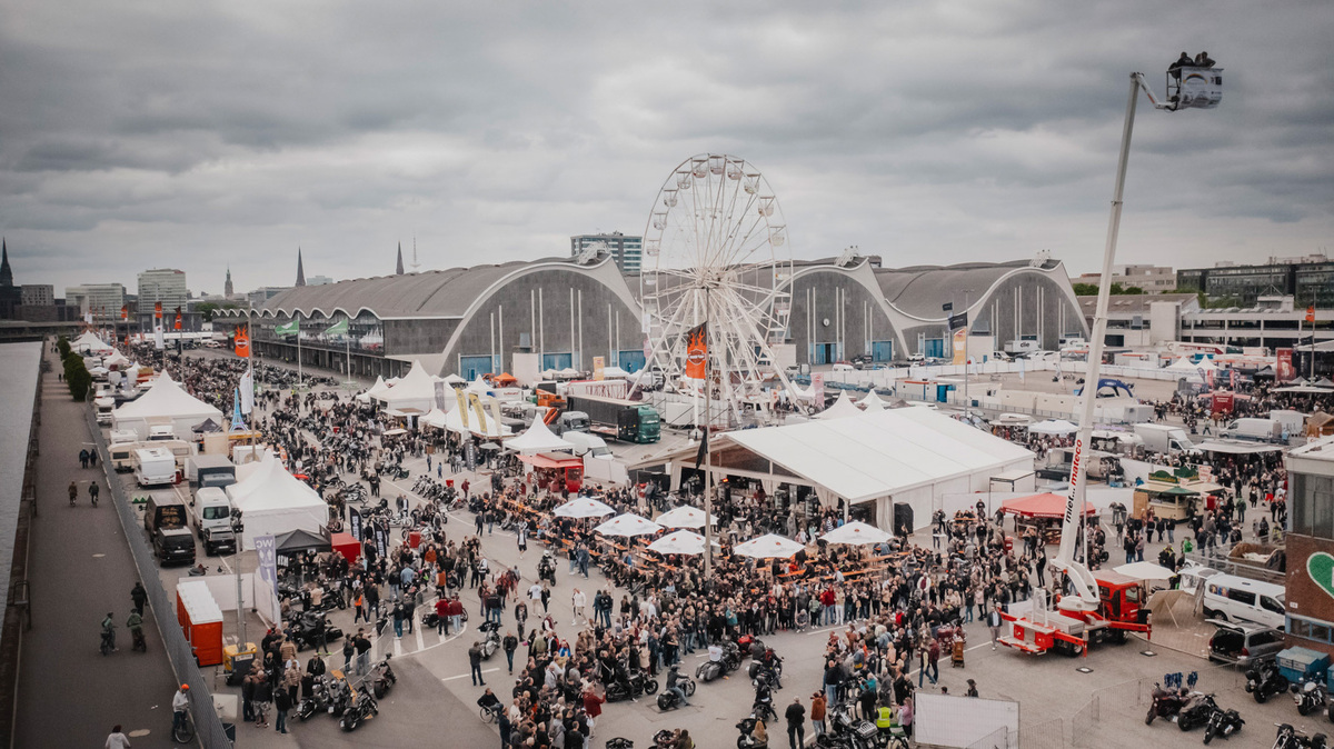 Auf dem Gelände des Großmarkts an der Banksstraße und mit bestem Blick auf Hamburger Wahrzeichen wie den Michel steigen vom 28. bis zum 30. Juni 2024 die Hamburg Harley Days.