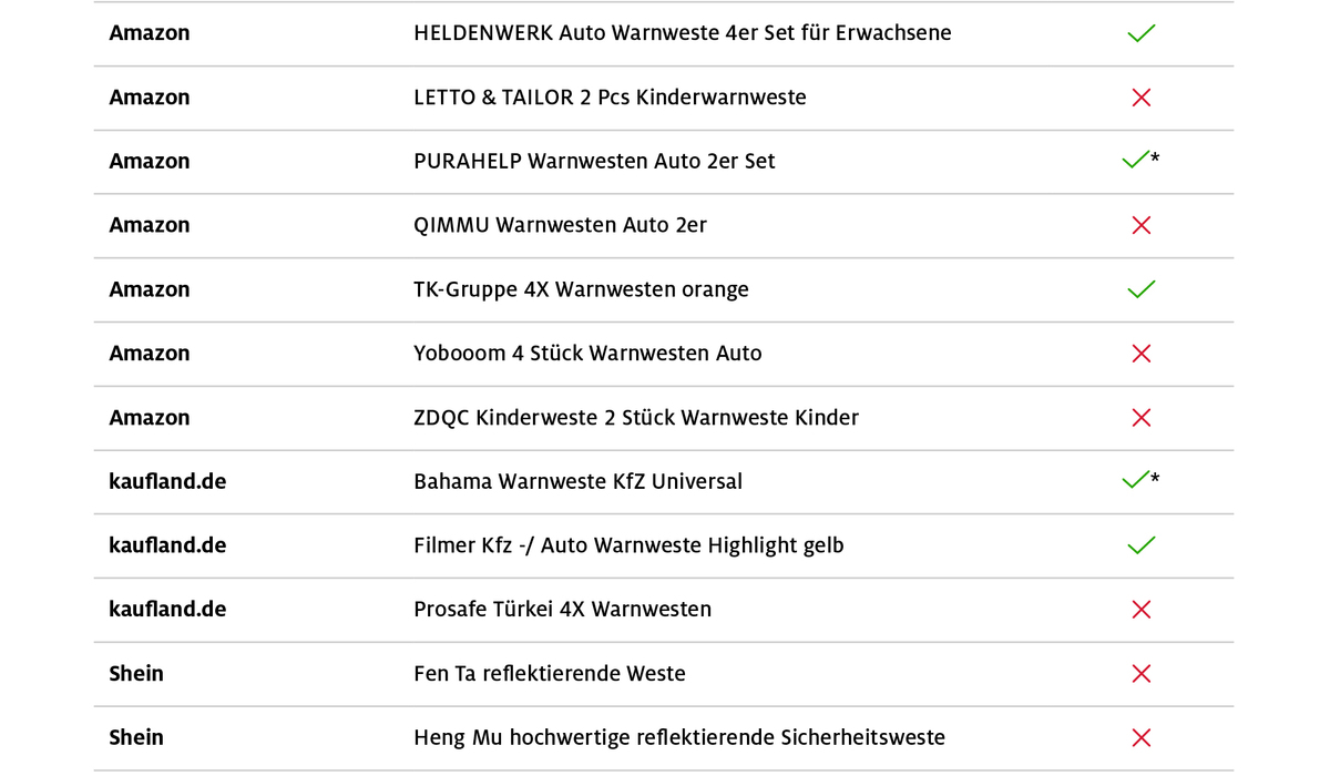 ADAC Warnwesten-Test 2025 - Viele Online-Versager