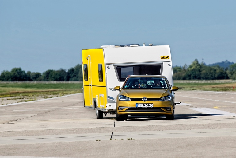 mid Groß-Gerau - Beim ADAC-Test müssen die Hänger-Stabilisierungs-Systeme beim Schlingern rechtzeitig eingreifen. ADAC / Ralph Wagner